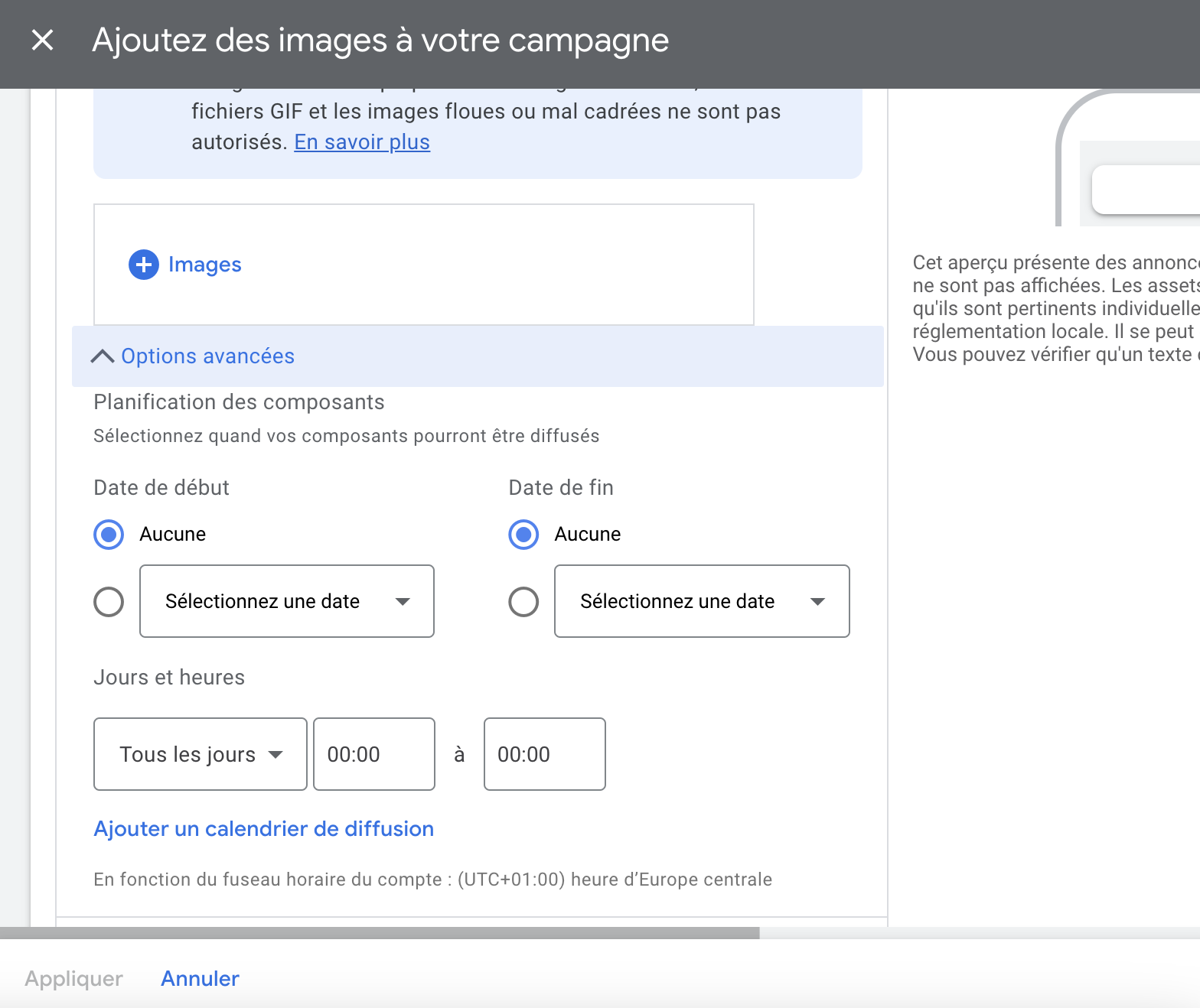 - vous avez des campagnes publicitaires actives depuis au moins 1 mois