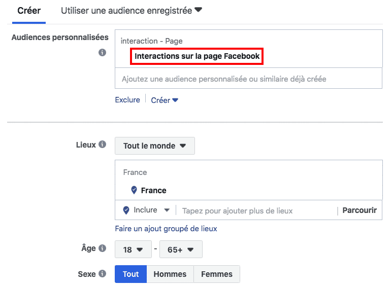 Ici, ce qui est potentiellement intéressant, est que vous ne chercherez pas forcément à cibler les fans de votre page mais des personnes gravitant autour de votre communauté.