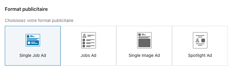 Tout au long de cet article, je m’attarderai sur les différents formats publicitaires à disposition lors de la création d’une campagne, afin de comprendre quelles sont les différences entre chacun d’entre eux, et comment vous pourriez faire le meilleur choix pour vos prochaines campagnes de publicité LinkedIn.