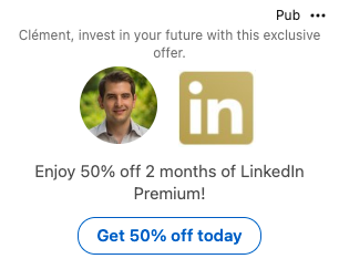 - Message Ad (message privé sponsorisé provenant d’un profil personnel LinkedIn)