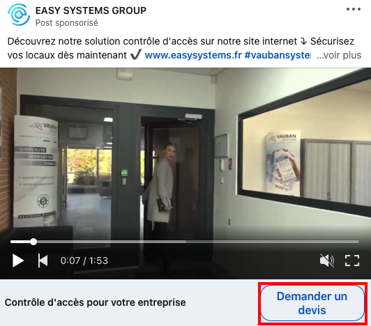 D’un côté, les utilisateurs n’associent pas vraiment le fait de voir une vidéo et d’avoir à cliquer quelque part. La seule manière pour cela est de cliquer sur le bouton d’appel à l’action (CTA) en dessous de la vidéo :