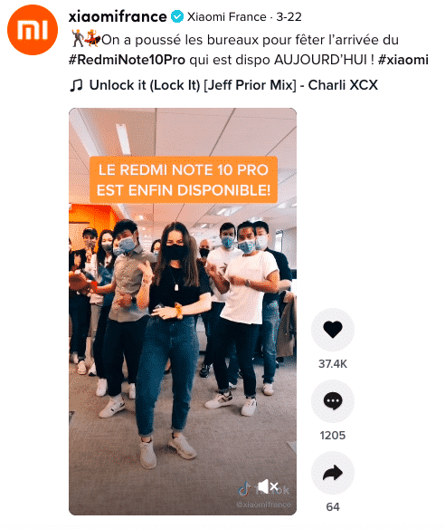 Un exemple est le partage de la vidéo ci-dessous par Xiaomi France annonçant la disponibilité de l’un de ses tout derniers téléphones.