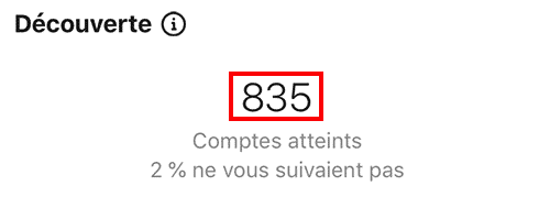 Le premier indicateur à observer est le nombre de personnes uniques atteintes par vos posts Instagram, autrement nommée la couverture. Celle-ci se différencie du nombre d’impressions (affichages) de vos publications, car une personne peut voir potentiellement plusieurs fois un même contenu.
