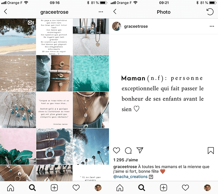 Par exemple, la marque de bijoux ci-dessous propose de manière régulière des citations toujours en lien avec l’actualité, comme la fête des mères, où il est courant d’offrir ce type de produits :