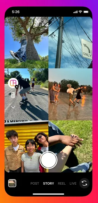 Instagram met également en avant la « Mise en page » comme option de composition de Stories :