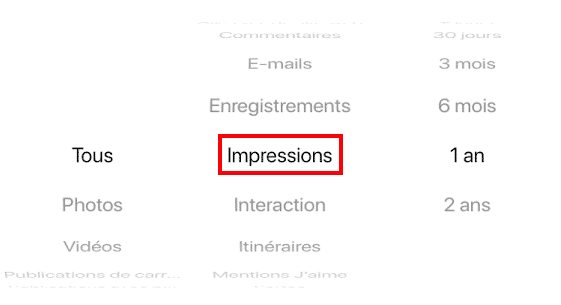 Les impressions correspondent au nombre total de fois que vos publications ont été vues par les comptes qui vous suivent mais pas seulement. En effet, au-delà de vos abonnés, certains utilisateurs de l’application peuvent tomber sur vos contenus par l’intermédiaire des hashtags que vous auriez utilisé dans vos légendes, ou simplement car ils ont visité votre profil mais sans forcément vous suivre.