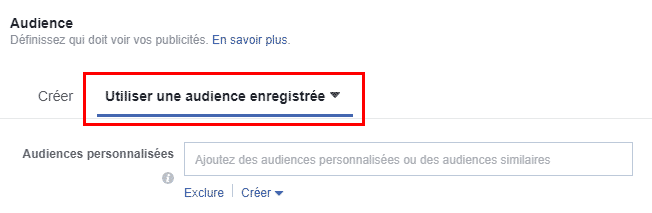 La prochaine fois, si vous souhaitez retrouver cette audience, cliquez sur « Utiliser une audience enregistrée » à côté de l’onglet « Créer » :