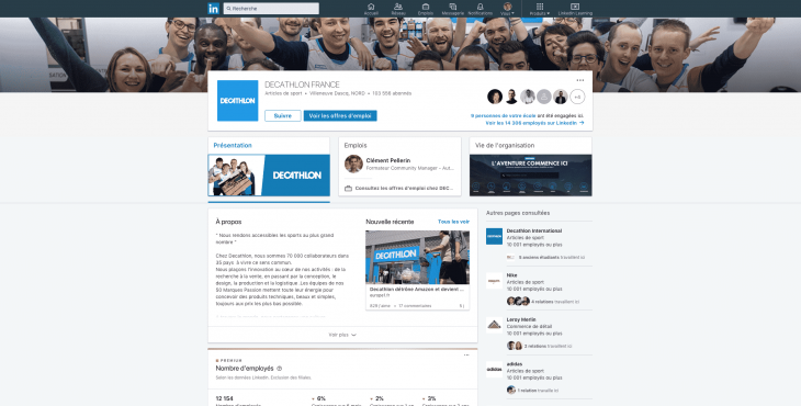 Autre exemple : la chaîne de magasins de sport Décathlon met en avant ses collaborateurs par l’intermédiaire du bandeau de couverture :