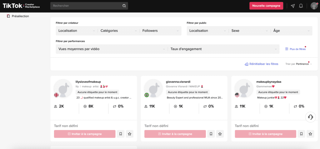 Cette plateforme se nomme « Creator Marketplace », et se présente comme un réel moteur de recherche de partenaires d’influence.
