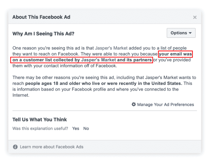 Dans l’un de ses derniers articles de blog, Facebook a annoncé qu’à partir du 2 juillet 2018 les marques souhaitant se servir des audiences personnalisées à base d’e-mails ou de numéros de téléphone devront déclarer qu’elles ont obtenu le consentement de ces personnes pour une utilisation publicitaire de leurs données.