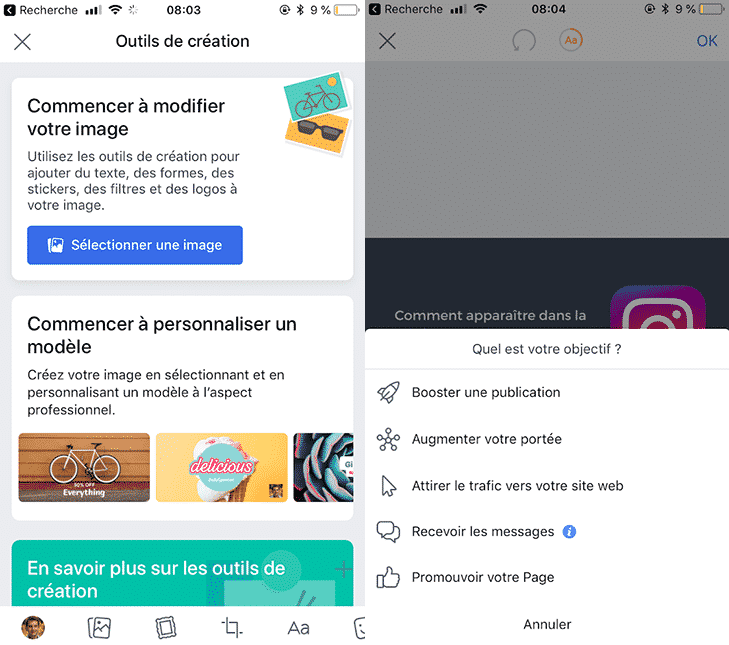 Créer des publicités depuis l’application mobile « Publicités Facebook »