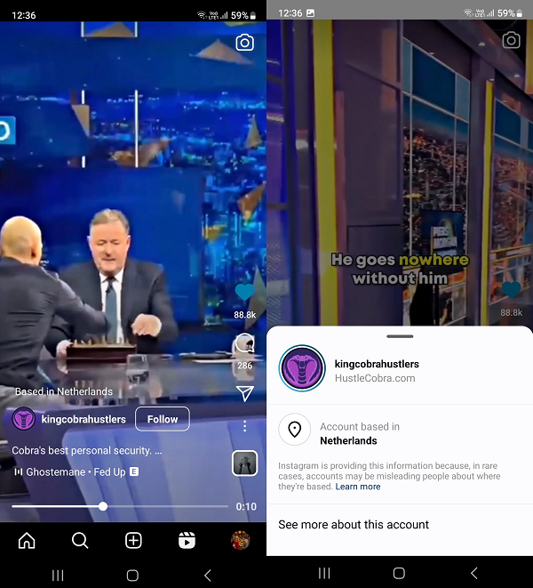 L’explication fournie par Instagram est la suivante : « Instagram fournit ces informations car, dans de rares cas, des comptes peuvent tromper les utilisateurs sur leur lieu de résidence. »