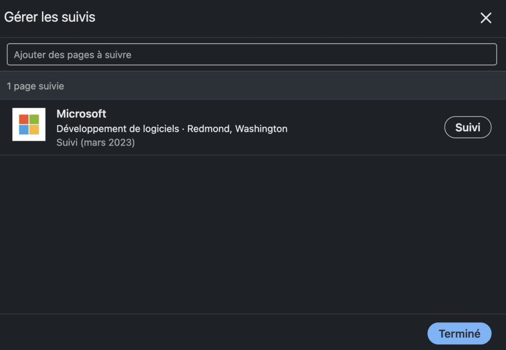 Suivre des pages « Entreprise » depuis votre page de société