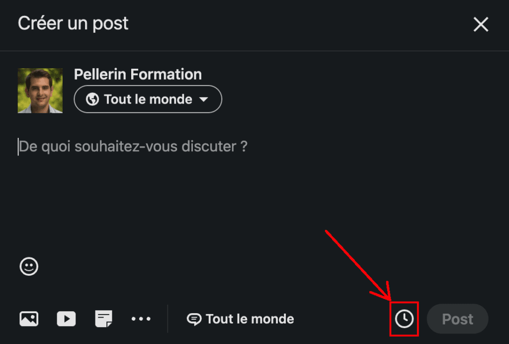 Chaque propriétaire de page est désormais en mesure de programmer des publications, avec l’icône proposée ci-dessous lors de la rédaction de votre post.