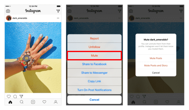 Il sera très bientôt possible pour tous les utilisateurs de pouvoir masquer l’affichage de publications/stories sans avoir à se désabonner de comptes donnés. Une nouvelle option sera alors offerte, comme nous le voyons ci-dessous :