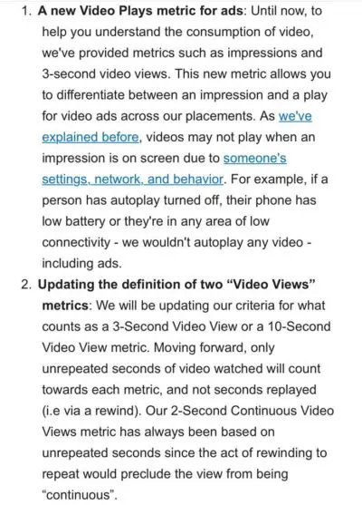 Le réseau social a annoncé l’arrivée d’une nouvelle donnée nommée « Lectures de vidéos » afin de différencier celles-ci des impressions.