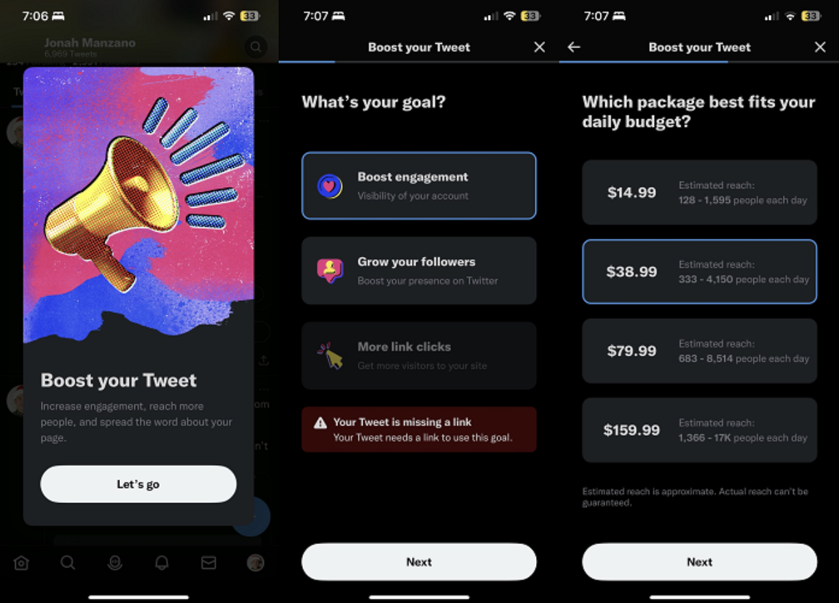 Le réseau social serait actuellement en train de tester l’intégration d’une nouvelle option au niveau d’un tweet permettant de booster rapidement celui-ci.