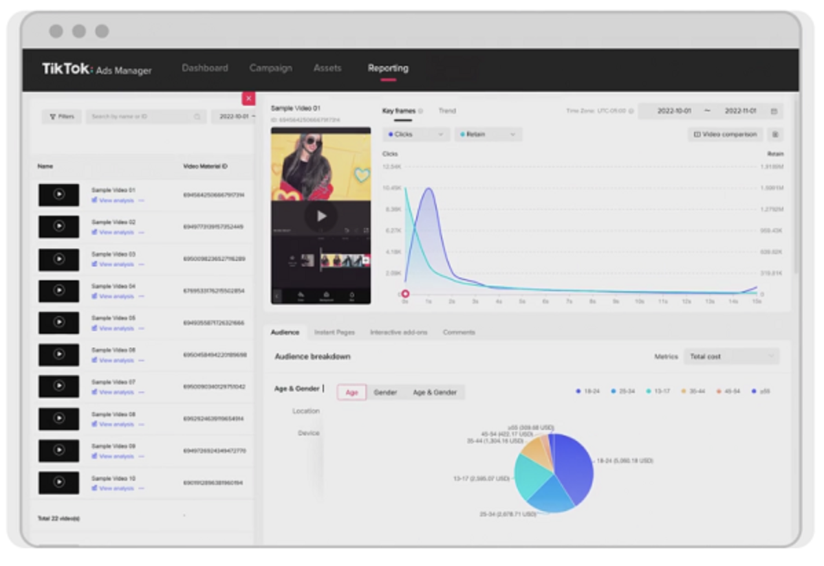 Dans le TikTok Ads Manager, il est désormais possible d’obtenir des données complémentaires de performances des vidéos telles que :