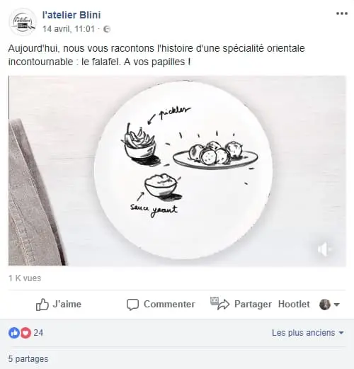 Sur Facebook et Instagram, la marque se donne un côté authentique en racontant l’histoire de ses recettes phares, comme ici, avec l’origine du falafel :