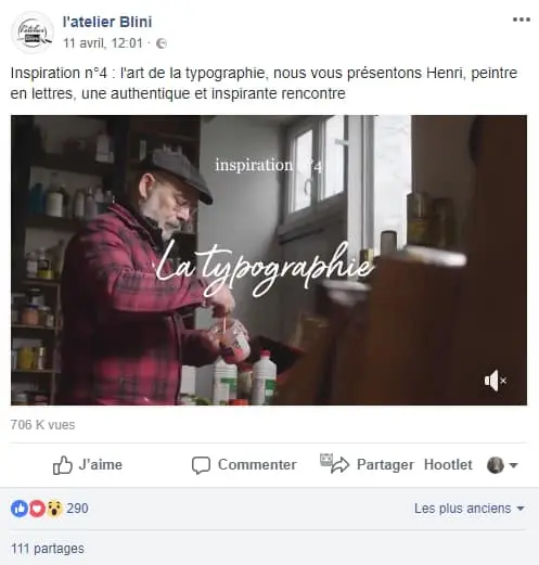 Mais ce n’est pas tout ! Soucieux de valoriser le côté « homemade » et local, L’Atelier Blini présente des artisans aux spécialités diverses. Par exemple, dans cette publication Facebook, la marque met en avant un peintre aux lettres :