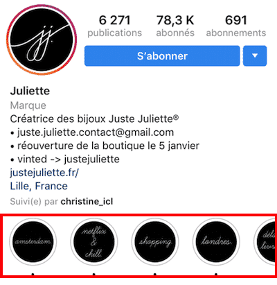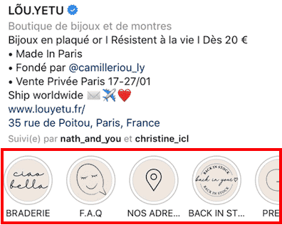Dans cette deuxième partie, je vais m’intéresser à la manière dont les marques de bijoux et bijoutiers se servent des Stories, et notamment les Stories à la une disponibles en permanence depuis le profil.