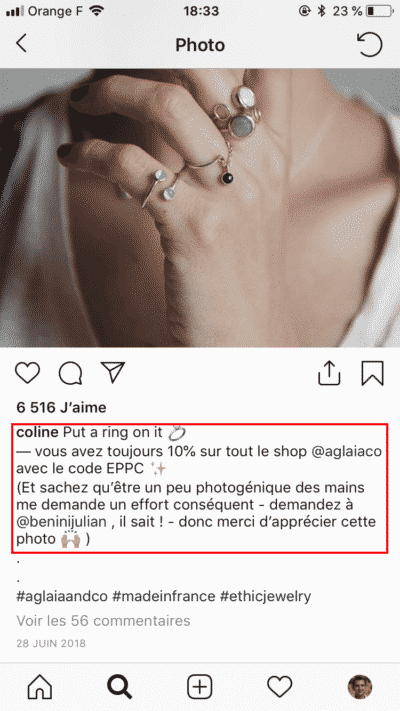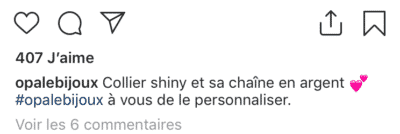 Il existe une solution pour cacher vos hashtags Instagram, si vous souhaitez continuer à référencer vos publications selon des mots-clés précis, dont je parle dans l’un de mes anciens articles. Celle-ci consiste à insérer vos hashtags dans le premier commentaire de votre publication.