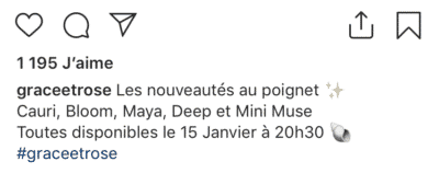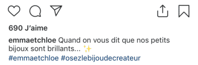 Comment les marques de bijoux rédigent-elles les légendes de leurs publications et insèrent-elles de nombreux hashtags ? Parmi les marques disposant de plus de 50 000 abonnés, j’ai remarqué que l’usage des hashtags est extrêmement limité voire inexistant.