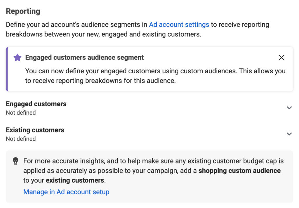 Meta définit les clients engagés comme « des personnes qui connaissent votre entreprise ou qui ont interagi avec vos produits ou services, mais qui n’ont pas effectué d’achat ». Avec ce nouveau paramètre, vous pourrez désormais créer une audience personnalisée de ces personnes, ce qui offrira davantage d’opportunités de réengager ceux qui ont manifesté au moins un certain niveau d’intérêt explicite.