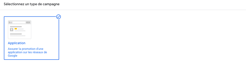 Il n’existe qu’un seul type de campagne pour cet objectif : application.