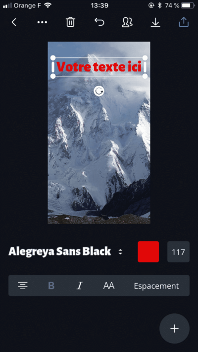 Ajoutez ensuite le texte sur le visuel, avec la police, taille, style et couleur de votre choix :