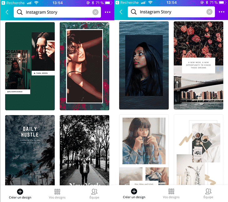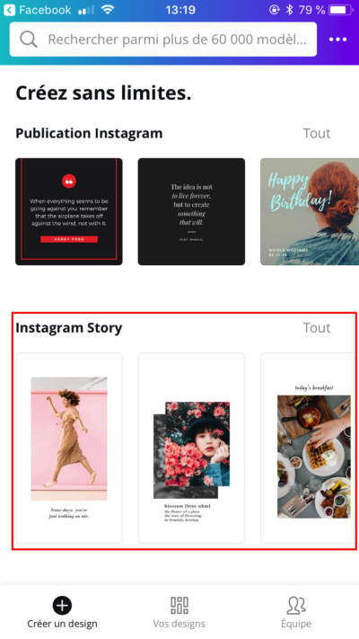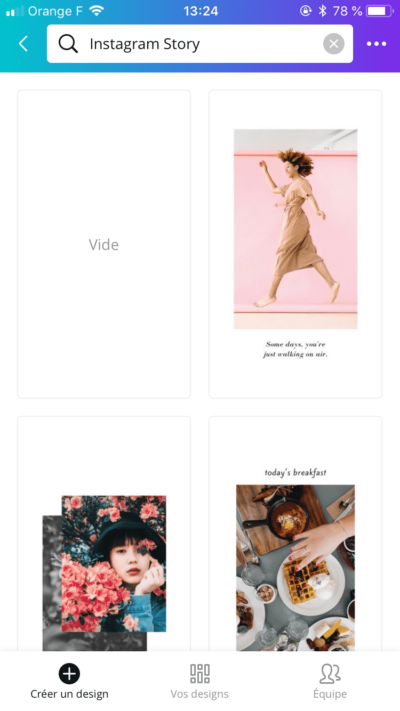 Commencez par ouvrir l’application (j’utiliserai Canva dans cet exemple) et sélectionnez un modèle de Story :