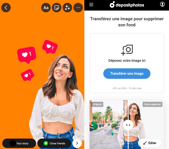 D’autre part, je vous invite à découvrir un outil gratuit très intéressant vous permettant de retirer l’arrière-plan de vos photos : fr.depositphotos.com