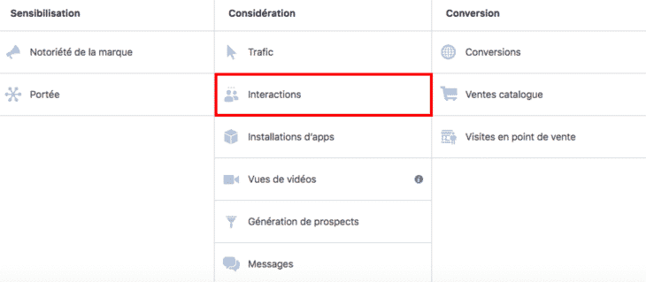L’objectif d’une campagne de génération d’interactions est d’inciter vos audiences à s’engager sur vos messages sponsorisés. L’algorithme Facebook va optimiser votre publicité pour obtenir le maximum de personnes interagissant sur votre publication.