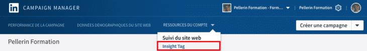 - cliquez sur « Ressources du compte » puis « Insight Tag » dans votre Campaign Manager