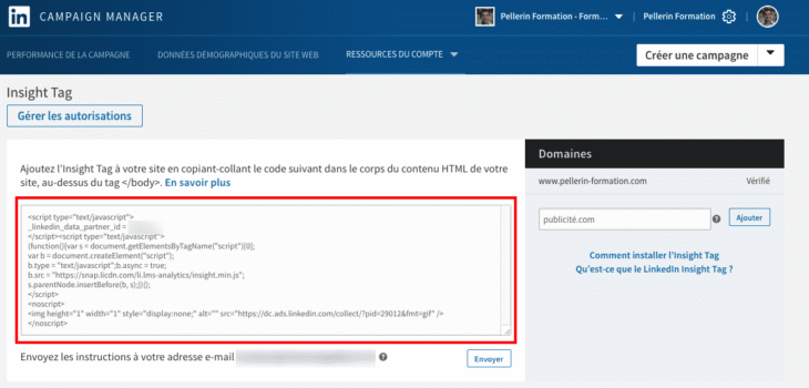 1) Ajoutez le code de suivi (Insight Tag) sur votre site Internet