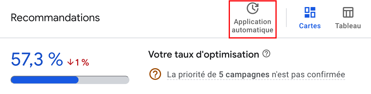 Il est possible pour les annonceurs de pouvoir appliquer automatiquement les recommandations Google Ads à leurs campagnes.