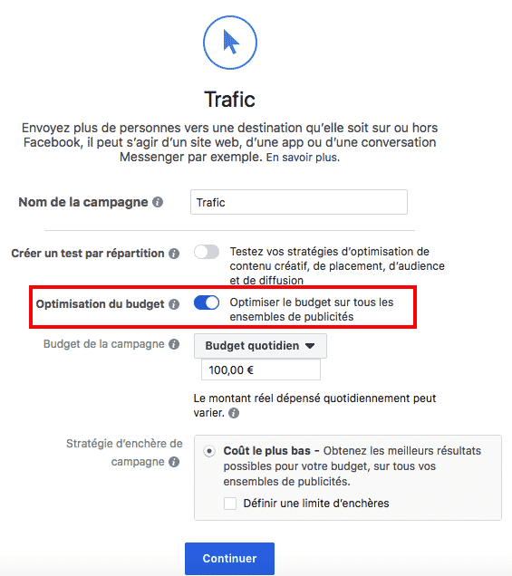 3) Réduire ses coûts de publicités Facebook avec l’outil d’optimisation des campagnes