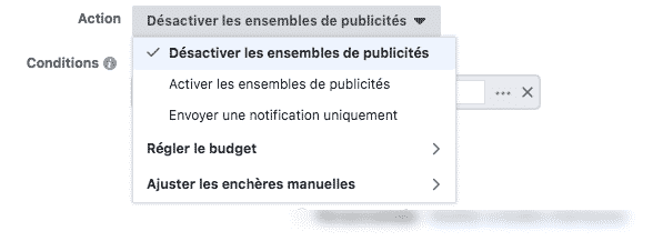 Cette règle désactivera les ensembles de publicités quand ces conditions seront atteintes :