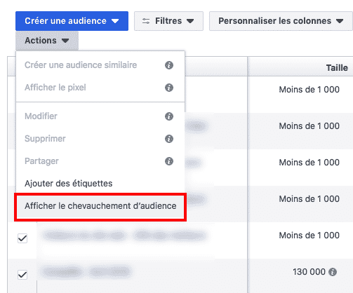 Alors, pour éviter cela, Facebook a développé un outil pour éviter les chevauchements d’audiences.