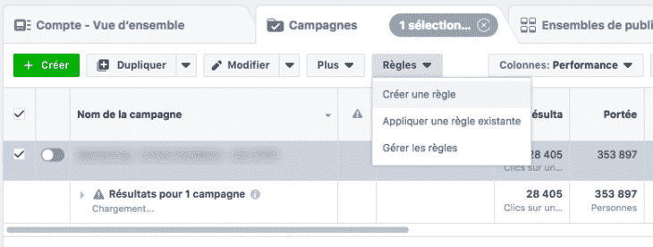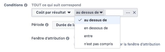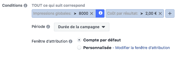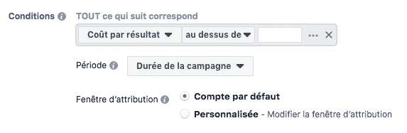 Cette règle désactivera vos campagnes, ensembles de publicités et publicités quand les conditions suivantes seront atteintes :