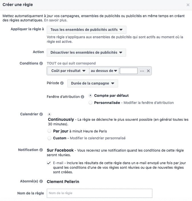 Comme mentionné plus haut, si votre taux de clics diminue, cela peut entrainer des coûts plus élevés. Avec cette règle, vous pouvez garder votre coût par clic ou par action sous contrôle.