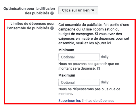 Si vous ne dépensez pas beaucoup d’argent et ne menez pas d’expériences sur vos différents ensembles de publicités & publicités, choisir « Clics » est une bonne option.