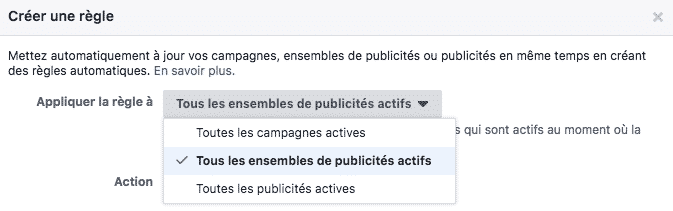 Cette règle automatique marche le mieux lorsque vous souhaitez tester de multiples ensembles de publicités sans vouloir déterminer un vainqueur manuellement.