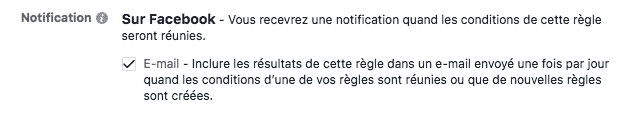 Ce quatrième exemple est un autre type de règle pour des tests publicitaires d’ensembles de publicités & publicités. Parfois, même avec un bon taux de clics, vous n’obtenez pas les résultats escomptés selon l’objectif sélectionné, et vous vous en rendez compte de manière trop tardive.