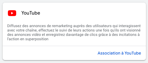 Cliquez sur « Association à Youtube » et suivez le processus proposé.