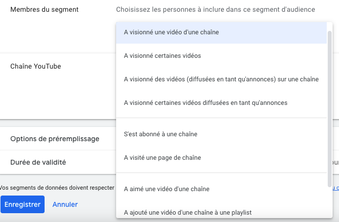 - sélectionner la chaîne Youtube de ce segment d’audience