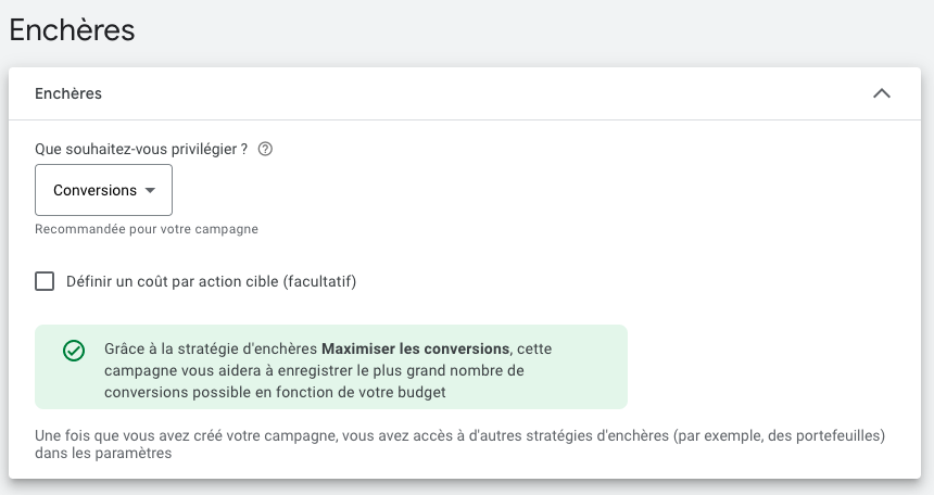 Choisissez votre stratégie d’enchères Google Ads.