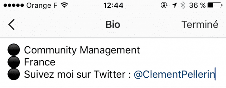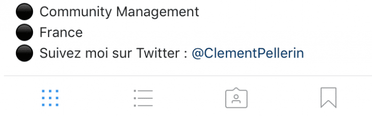 Vous pourrez choisir alors entre la stratégie de Thibault G qui choisit un point noir pour proposer sa liste ou des smileys comme le fait Jessica Thivenin. Alors, concrètement, comment procéder pour que vous aussi puissiez proposer des biographies similaires ?