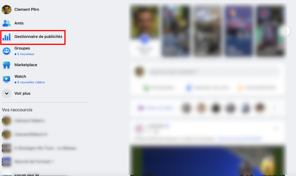 Dans un premier temps, connectez-vous à votre profil personnel Facebook puis cliquez sur « Gestionnaire de Publicités » disponible dans la barre à gauche de votre accueil.