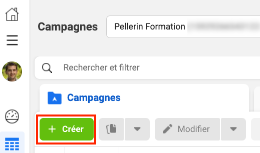 Dès votre arrivée sur le Gestionnaire de Publicités Facebook, il vous faudra cliquer sur le bouton vert « Créer » tel que ci-dessous :